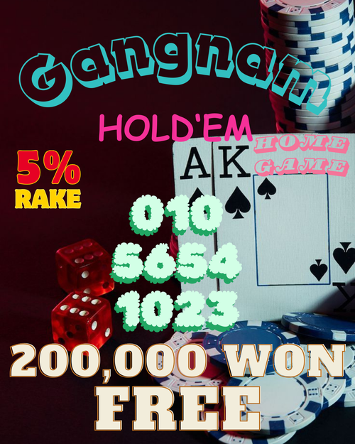 身在韩国,想找刺激的扑克游戏?厌倦了千篇一律的赌场和无聊的玩家?来江南最火爆的家庭扑克游戏厅试试手气吧!现在就打电话,看看如何获得特别奖励!