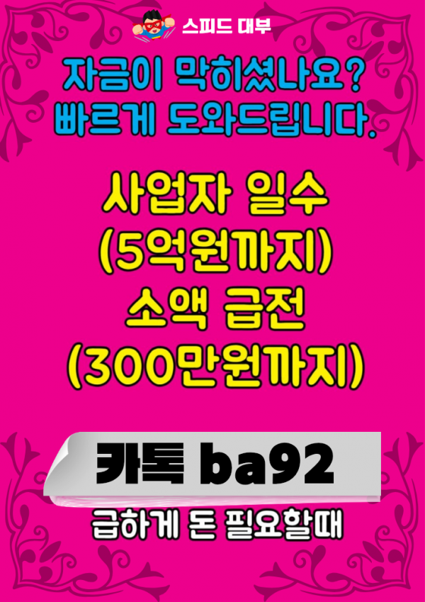 개인돈 대출 오늘도 급전 필요하세요? 일수 사업자 간편 대출! 카톡ba92